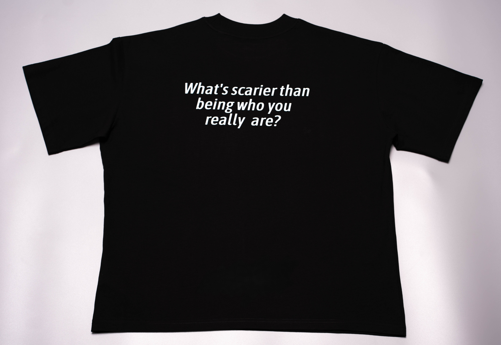 Tricou negru statement cu un mesaj puternic care atrage privirile. Design contrastant, cu text alb clar și modern, transmite o notă de mister și autenticitate, fiind perfect pentru cei care vor să-și exprime personalitatea fără compromisuri. Croiala lejeră oferă libertate de mișcare și un look relaxat.